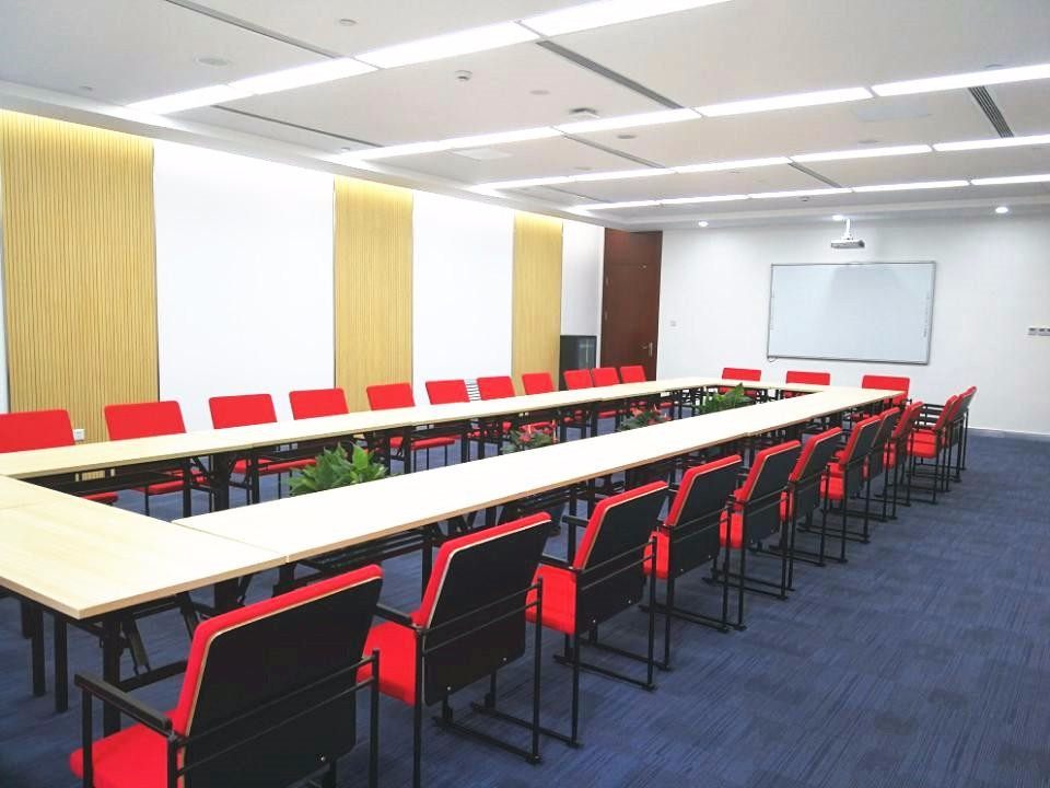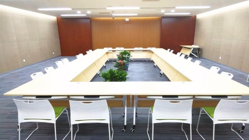 U型會(huì)議室可容納36人進(jìn)行小型座談、研討會(huì)。會(huì)議室內(nèi)配有無(wú)線網(wǎng)絡(luò)覆蓋、網(wǎng)絡(luò)地板、電子教學(xué)白板(支持投影、觸控、手寫)等設(shè)備。