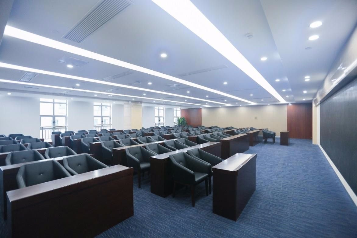 類型4教室:共有2間,每間可容納112人、可舉辦大型座談會(huì)、論壇、培訓(xùn)會(huì)議等,后期計(jì)劃實(shí)現(xiàn)同聲傳譯功能,為中大型培訓(xùn)、會(huì)議提供更好的技術(shù)支持。教室內(nèi)配有無(wú)線網(wǎng)絡(luò)覆蓋、網(wǎng)絡(luò)地板、LED大屏等電子設(shè)備。